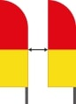 Deze beachflags geven een afgebakende zone aan waar de condities van het (zwem)water gevaarlijk zijn. Zwemmen, baden en andere activiteiten op of in het water hebben een verhoogd risico. Zwemmen tussen deze vlaggen wordt ten zeerste afgeraden.
