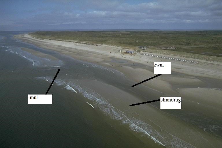 Beter is het om met de stroom mee te zwemmen totdat deze minder wordt. Zwem daarbij schuin weg en ga over de zandbanken terug naar de kant. Zandbanken kunt u herkennen aan het schuim op de golven. Dat schuim ontstaat bij het breken van de golven.